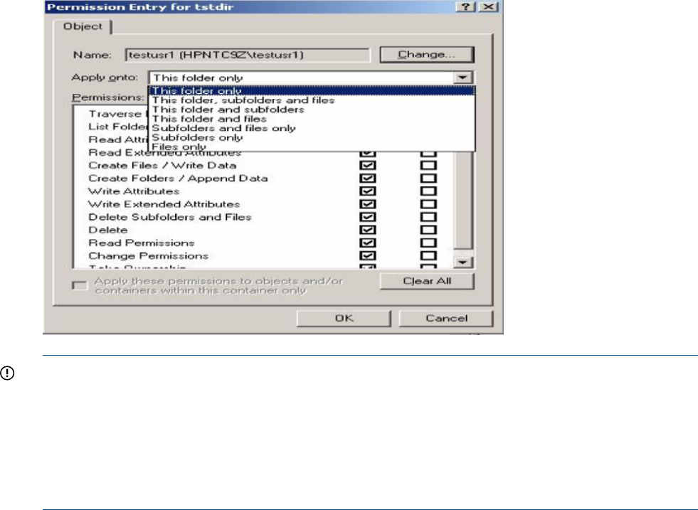 HP CIFS Server Directory ACLs and Windows 2000, Windows XP, Windows Vista, and Windows 7 clients 49