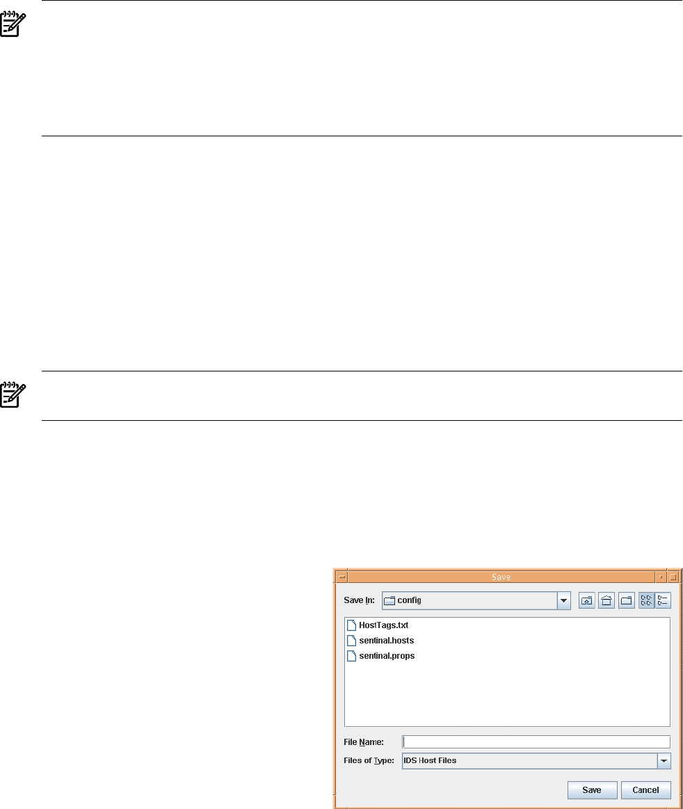 NOTE: You cannot use this method to save into the log file set of any host that has an entry