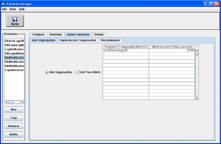 2. Select the Alert Aggregation tab on the Schedule Manager screen.