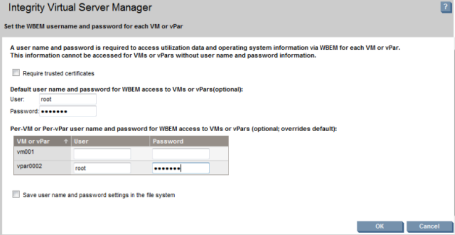 You must set WBEM credentials for VMs or vPars in HP SMH. This allows Integrity Virtual Server