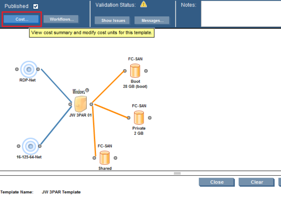 Enter a fixed cost in infrastructure orchestration designer by clicking the Cost tab in a template,