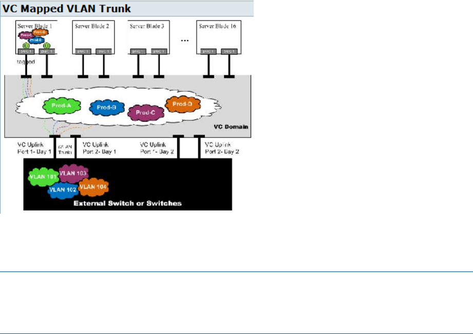 A Virtual Connect mapped trunk configuration enables VC to play a more active role managing