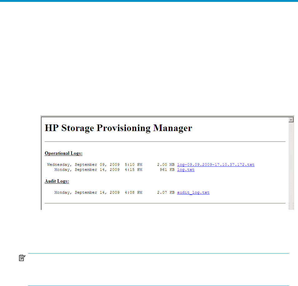 The audit logs can also be accessed from the HP Storage Provisioning Manager log and contains all