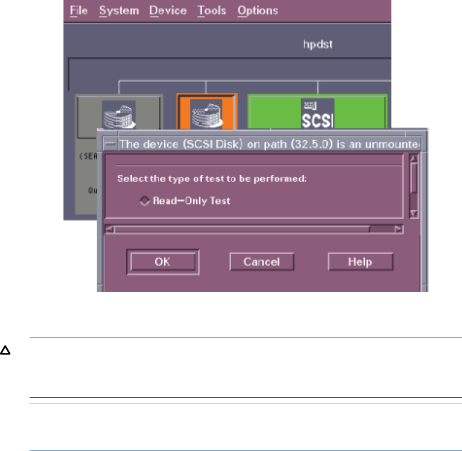 CAUTION: Selecting a Read-Write Test option can destroy the information on the disk. You
