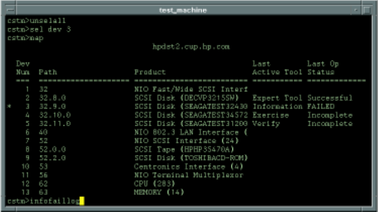 8. If a device fails a test, enter the following command at the cstm prompt to unselect all devices: