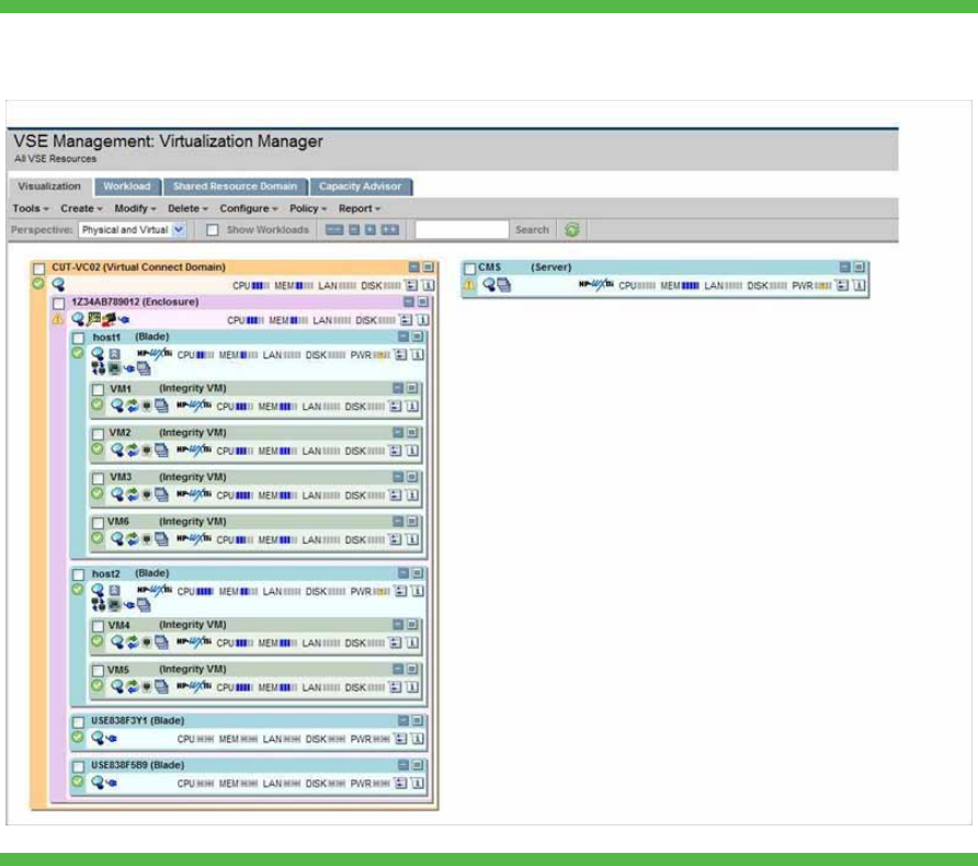 Figure 3: HP Virtualization Manager’s Physical and Virtual view of the Integrity VM online migration environment