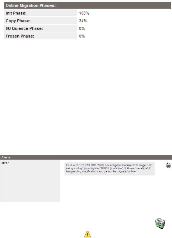 Error: Displays errors pertaining to migration of VMs.