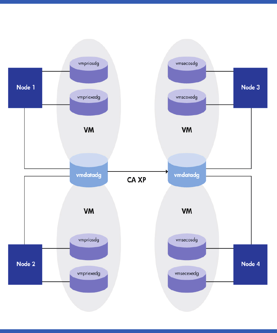 Similarly, the VxVM disk groups vxsecosdg and vxsecexedg can be shared among all nodes in the recovery site.