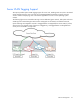 The following figure shows tunneled VLAN tags. On the dedicated, green network, both uplink and server