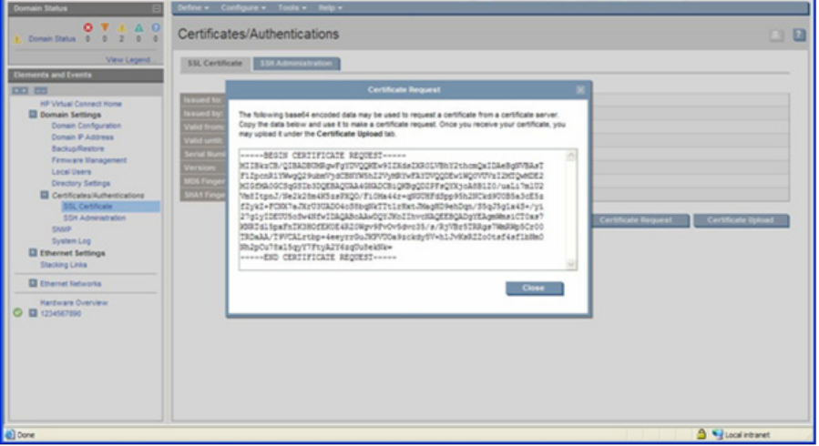 Authority for this particular Virtual Connect Manager. Otherwise, the certificate fails to match the private
