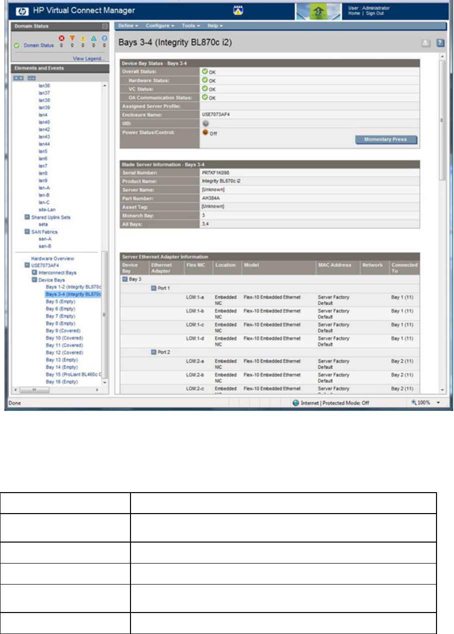 - Interconnect Bay Summary screen (Ethernet module)