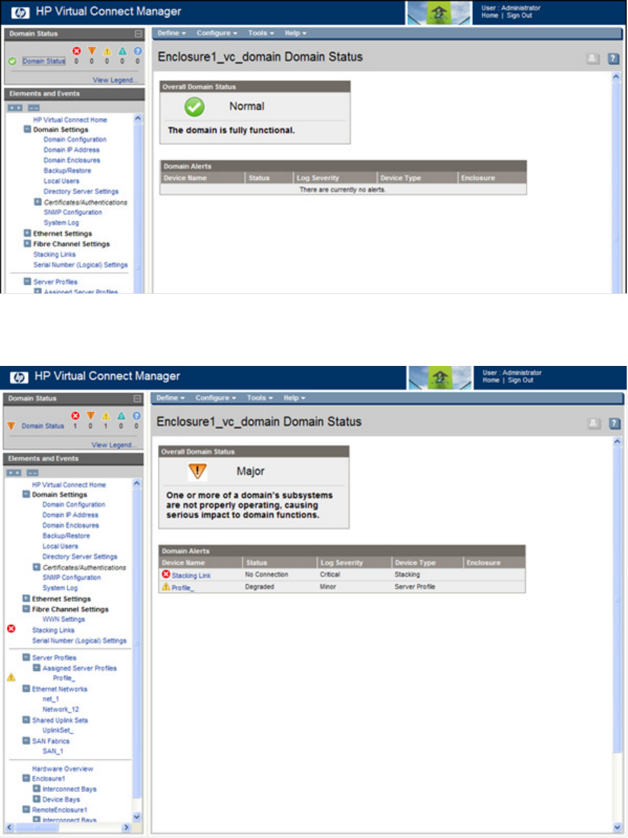 This screen provides an overall domain status and a detailed summary of systems that currently have an