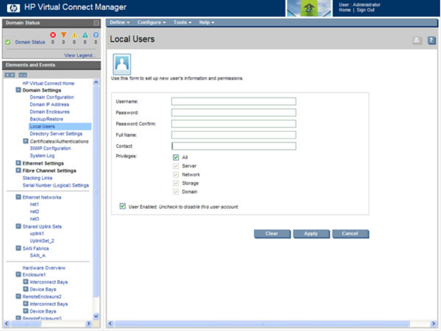 - Domain Settings (Local Users) screen