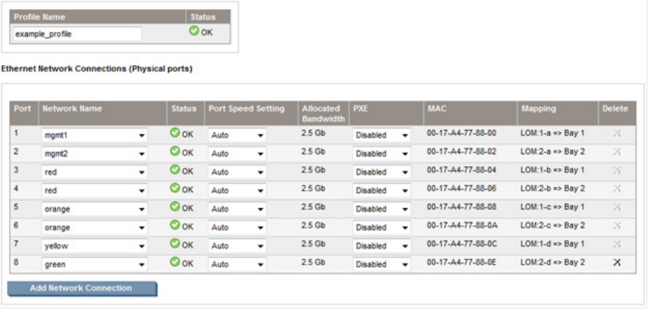 Although the Port Speed Setting is available for all network connections in a profile, Virtual Connect can