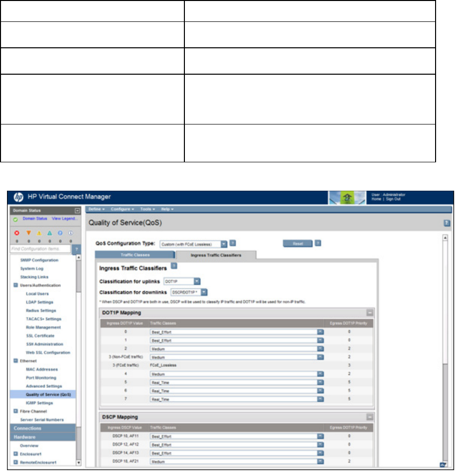 Virtual Connect uses the 802.1 Q priority for all other traffic. VC administrators can map DSCP/ToS values