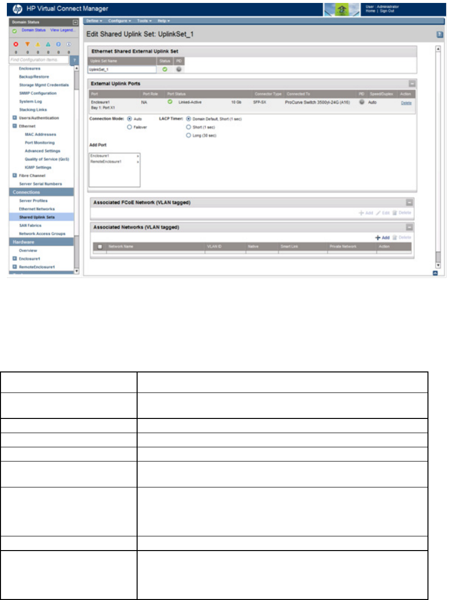 The following table describes the fields within the Edit Shared Uplink Set screen.
