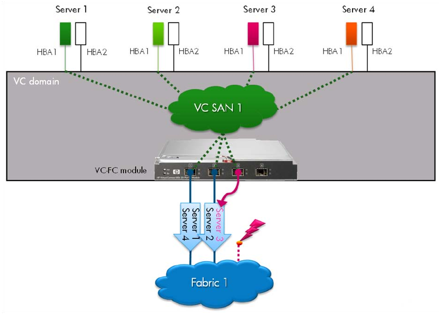 one of the remaining uplinks in the VC SAN fabric, resulting in automatic failover.