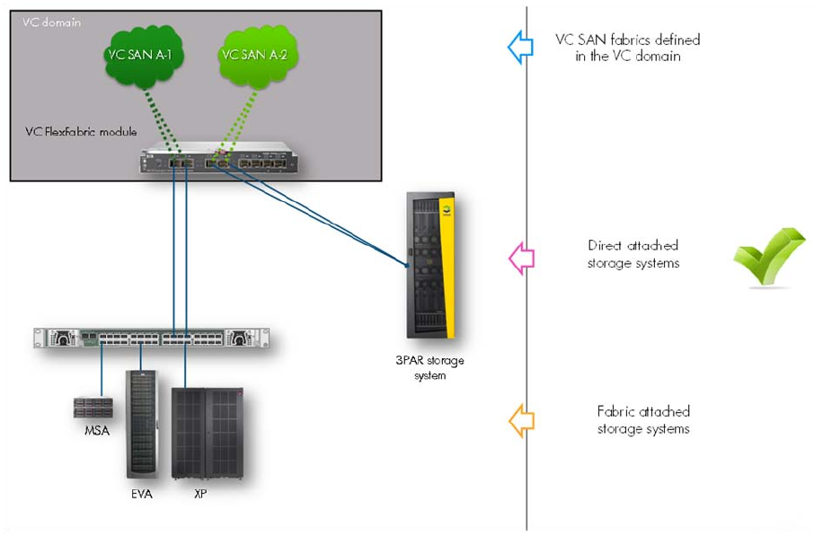 • All VC FlexFabric modules must be connected to the same 3PAR storage system(s).