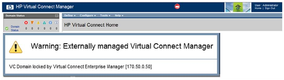 To view detailed product information, select About HP Virtual Connect Manager from the Help pull-down