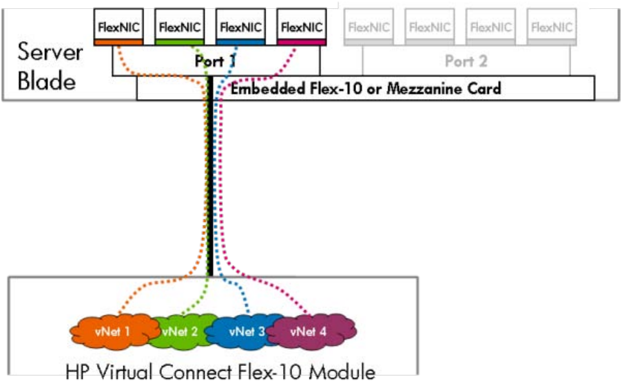 for the FlexNICs isolated, and each FlexNIC is assigned to one or more distinct Virtual Connect networks.