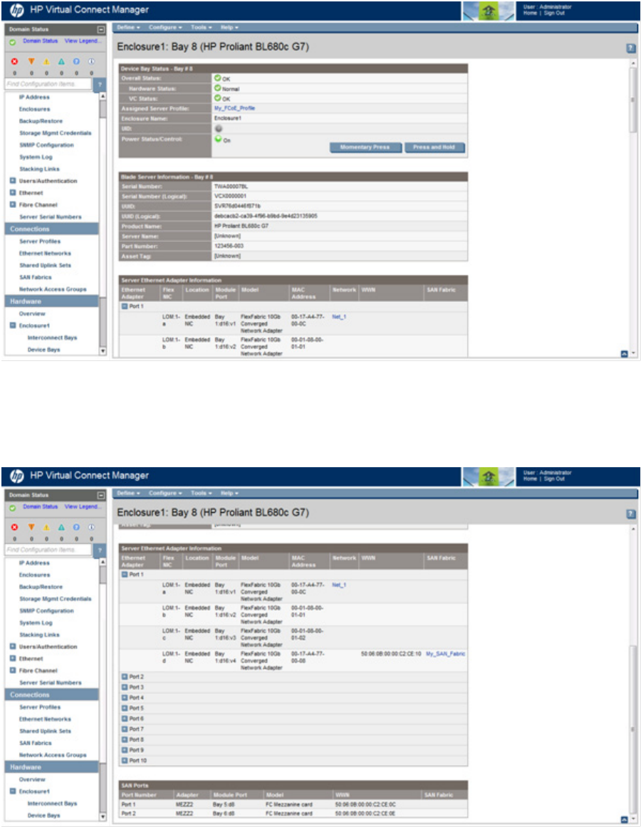 5. Verify the HP ProLiant BL680c G7 Server Blade FCoE connections: