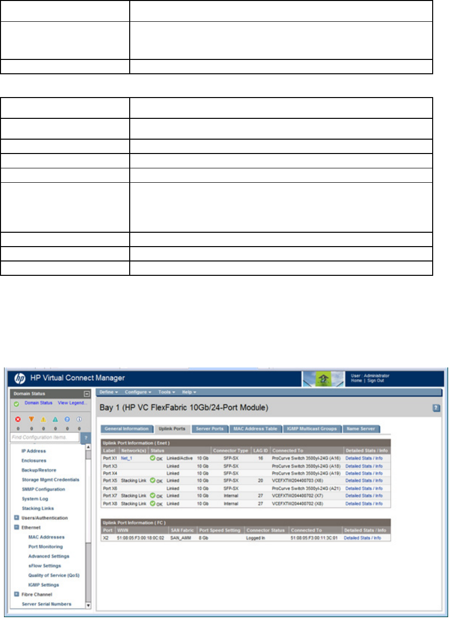 - Ethernet Bay Summary (Uplink Port Information) screen