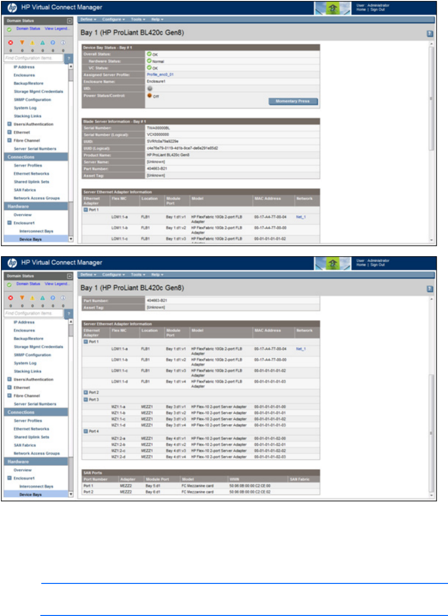 NOTE: Servers connected through VC 8Gb 24-Port FC Modules can take between 15 and 25