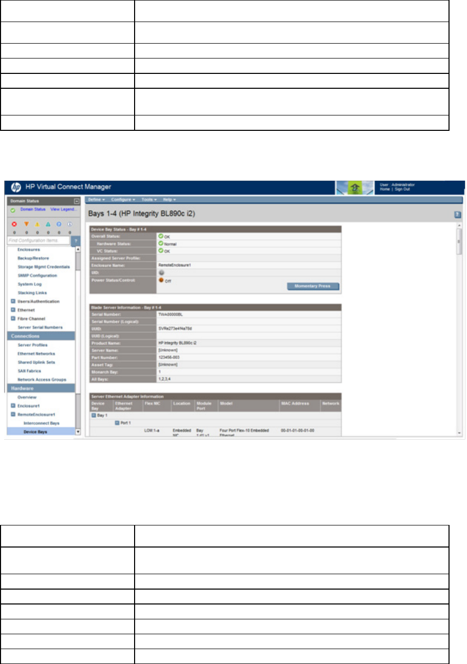 The following table describes the rows within the Server Bay Status table in the Server Bay Status screen.