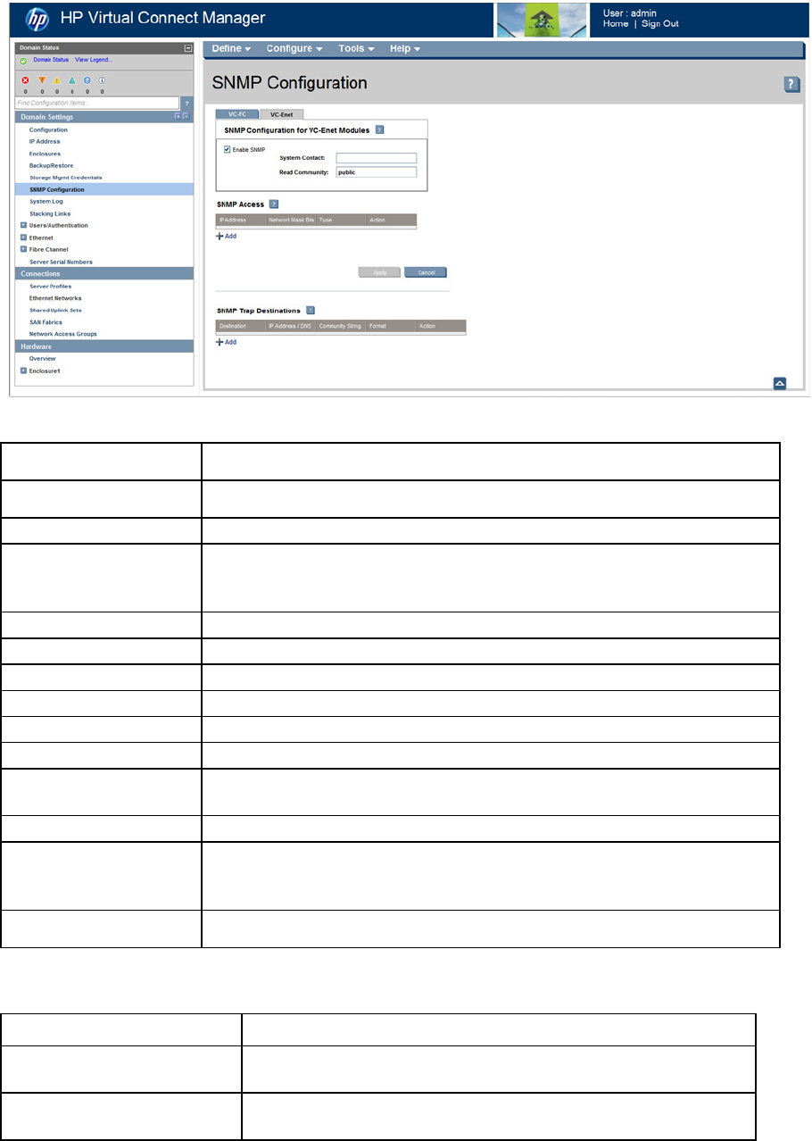 The VC-Enet SNMP settings apply to all VC-Enet modules in the Virtual Connect domain.