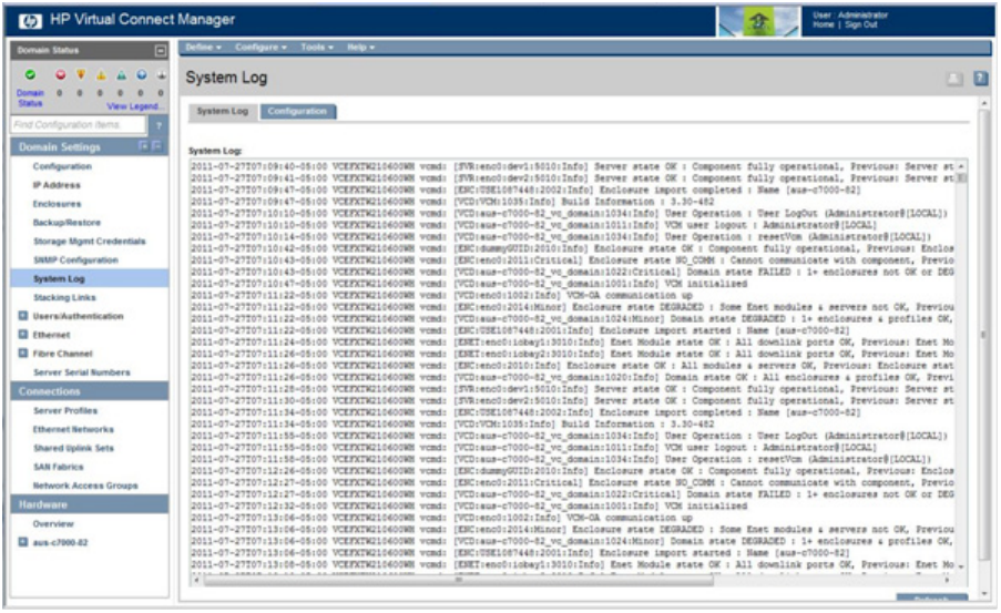 A wide variety of events are generated by Virtual Connect and logged into the System Log, or SysLog. The