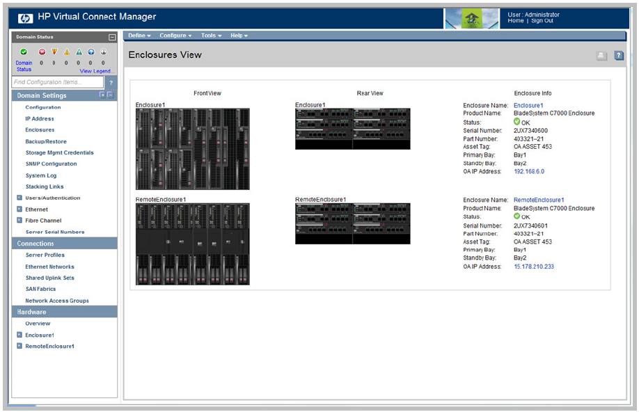 When more than one enclosure has been imported, each enclosure is displayed on the Enclosures View
