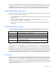 Command line Subcommands Command Description add Add a new object to the domain or to another object assign Assign a server profile to a device bay delete Delete the domain configuration exit Exit the Virtual Connect Manager command-line shell copy help Copy a configuration from one server profile to another server profile Display context-sensitive help for a command or object import Import an enclosure into the domain poweroff Power off one or more servers reboot Reboot one or more serve