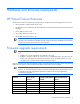 Firmware update Two options are available for VC firmware update: • HP BladeSystem c-Class Virtual Connect Support Utility (VCSU) For this release of HP Virtual Connect, the minimum firmware requirement for VCSU is version 1.6.0. HP recommends that you always use the latest version available. For more information about VCSU, see the HP BladeSystem c-Class Virtual Connect Support Utility release notes on the HP website (http://www.hp.com/go/bladesystem/documentation).