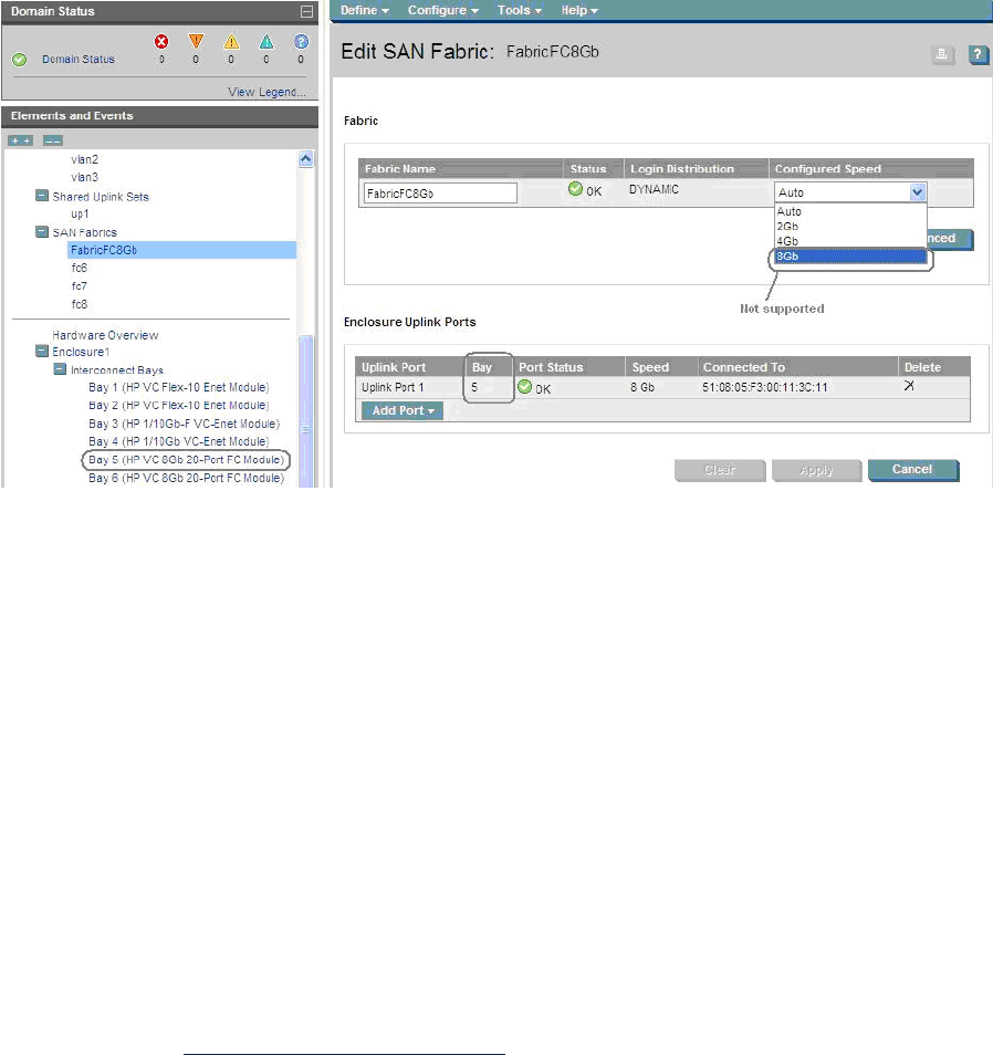 Fibre Channel Port Speed cannot be set to 8Gb for a HP Virtual Connect 8-Gb 20-Port Fibre