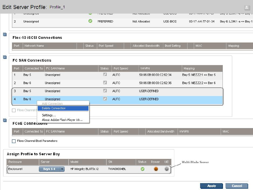 Figure 3-3 Server Profile configured with a FC multi-blade server