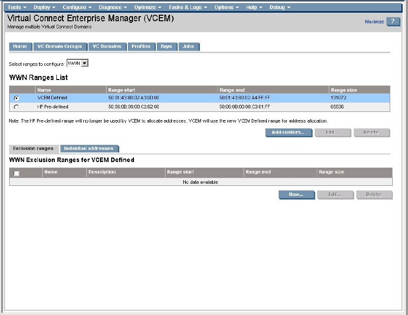- No HP-predefined ranges for MAC and WWN addresses in VC Domain Groups