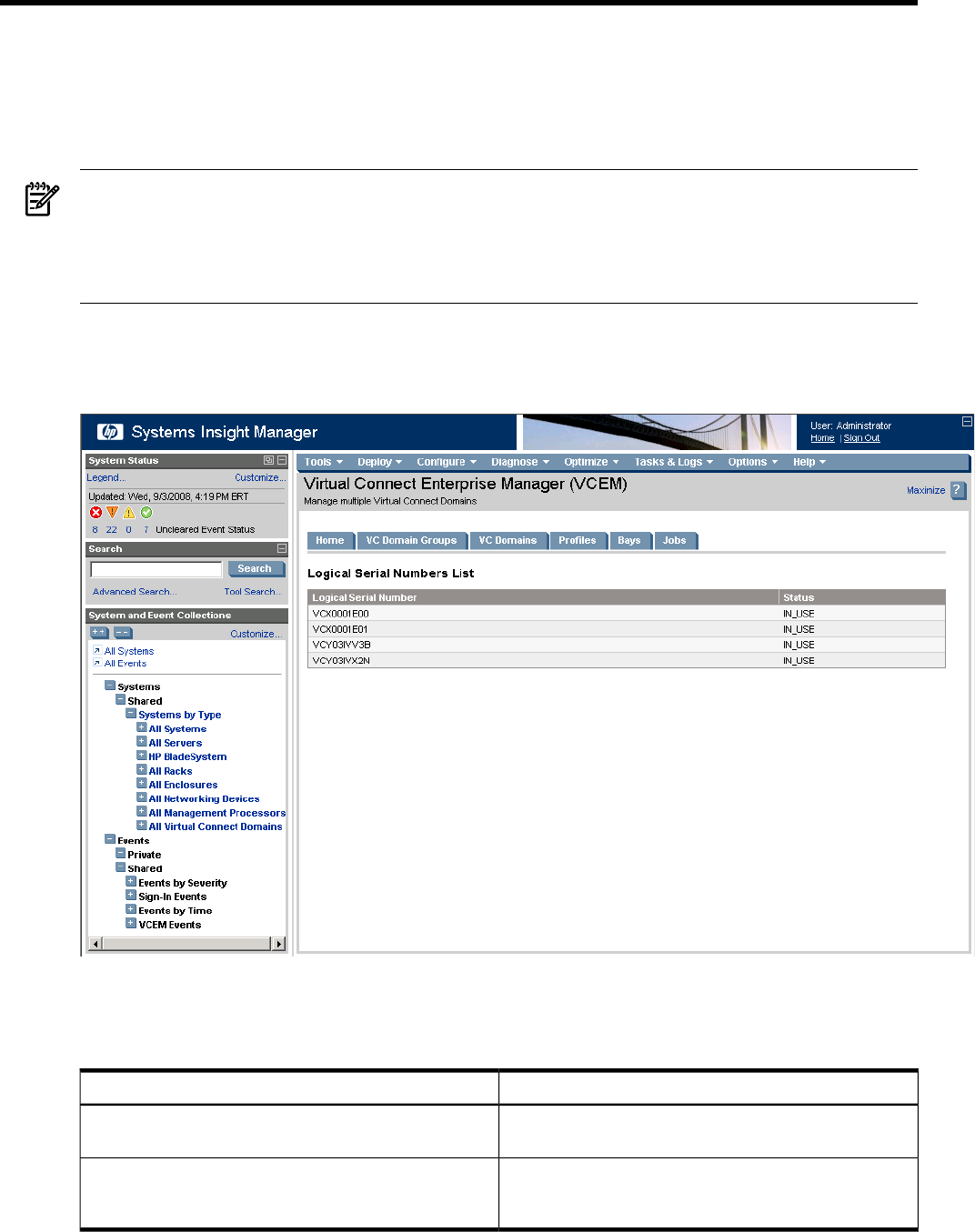 created by Virtual Connect Manager before having a VC Domain imported into VCEM. A logical