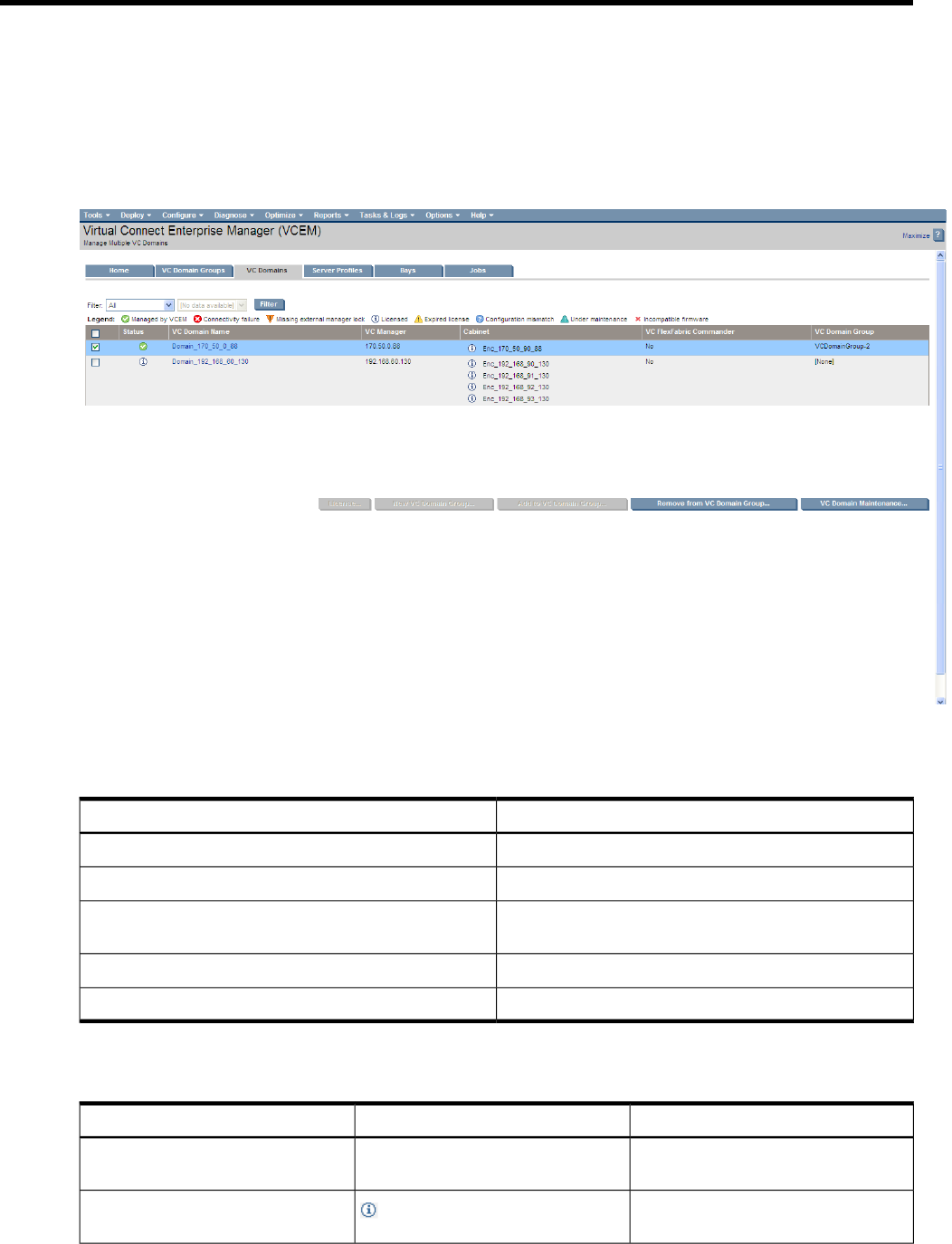 Table 3-1 “VC Domains page” lists the columns on the VC Domains page.