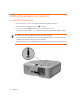 The projector takes a minute or so to warm up. The power button blinks during warm-up.