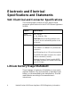 Electronic and Electrical Specifications and Statements VAC Electrical and Connector Specifications The following table contains the VAC electrical and connector specifications for the HP VPN Server Appliance SA3110. Feature Specification Power requirements 100 – 240 Vac 4 - 2 A, 50/60 Hz, 75W CAUTION: When installing multiple units in a rack, do not overload the power circuit to the rack. Connectors One power cord connector Two 10BaseT or 100BaseTX RJ-45 Ethernet connectors One S0 interface for a V.