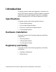 Contents INTRODUCTION..........................................................................................................1 SPECIFICATIONS ....................................................................................................................... 1 HARDWARE INSTALLATION........................................................................................................ 1 REGULATORY AND SAFETY.................................................................................................
