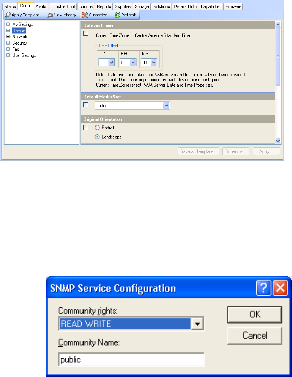 The SNMP service must be configured to allow for getting and setting information via SNMP. Right-