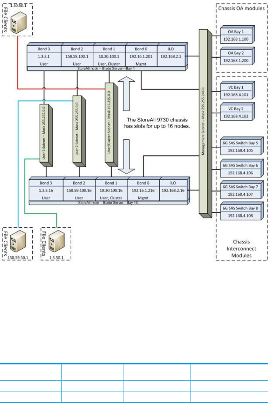 Table 10 StoreAll 9730 — IP addresses for one additional physical user network