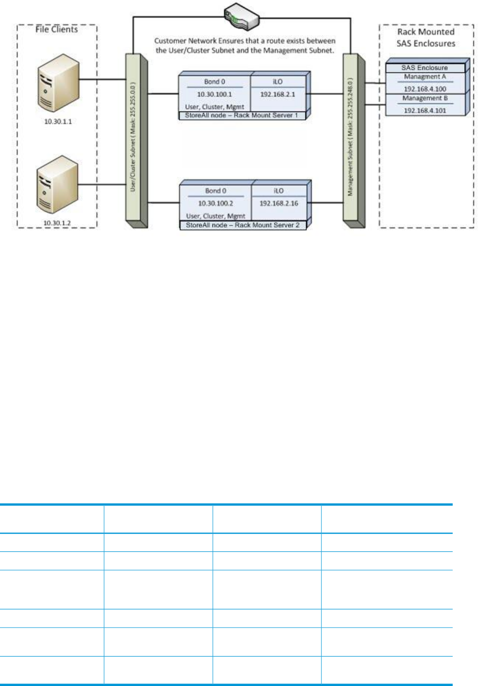 In this configuration, the StoreAll 93xx/8x00 requires the following IP addresses.