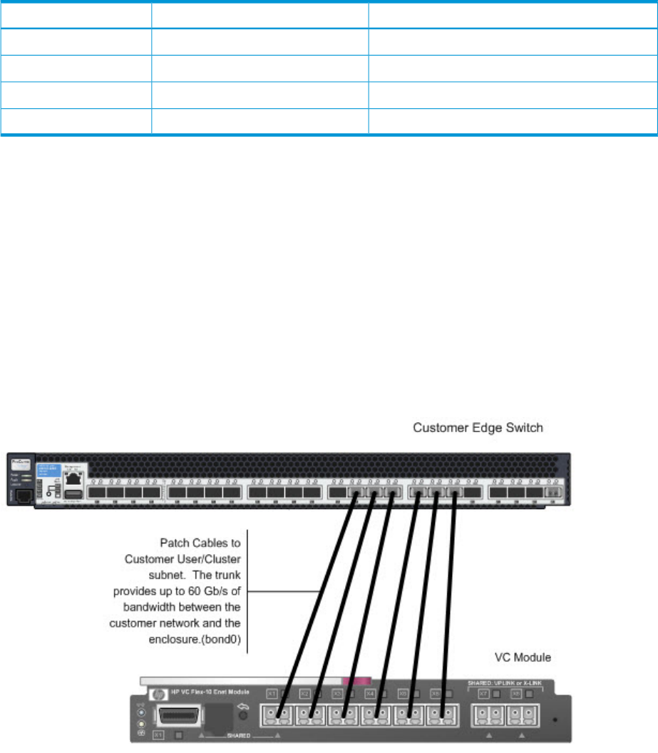 Customer Edge Switch – User/Cluster subnetInterconnect bay 1 – Connector X6Virtual Connect Module 1