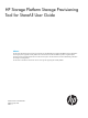 HP Storage Platform Storage Provisioning Tool for StoreAll User Guide Abstract This document describes storage provisioning and reporting on StoreAll platforms and explains the different storage configurations and storage layouts supported on these platforms. This document also describes the different operations supported by the Storage Provisioning Tooland describes how to use the tool's CLI options. This document also contains troubleshooting information for Storage Provisioning failures.