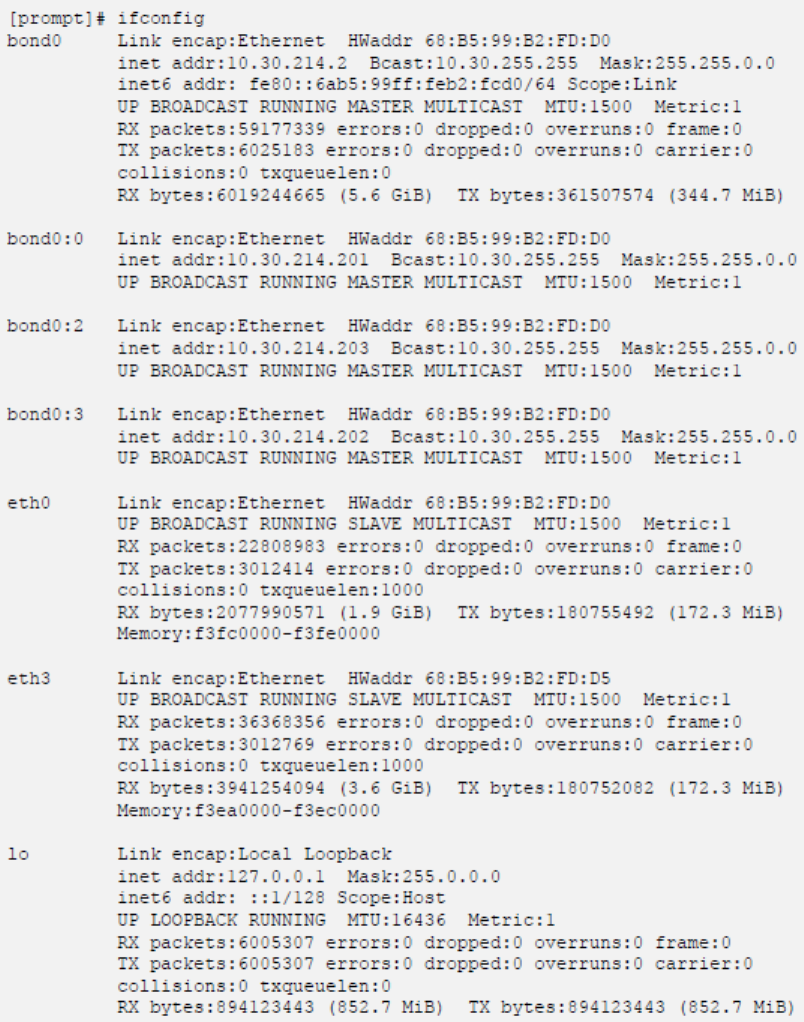 Output of ifconfig on StoreAll node 1 after failover from StoreAll node 1 to StoreAll node 2: