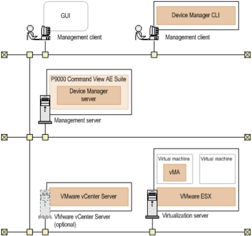The following shows a configuration in which vMA is deployed on the virtualization servers and vMA