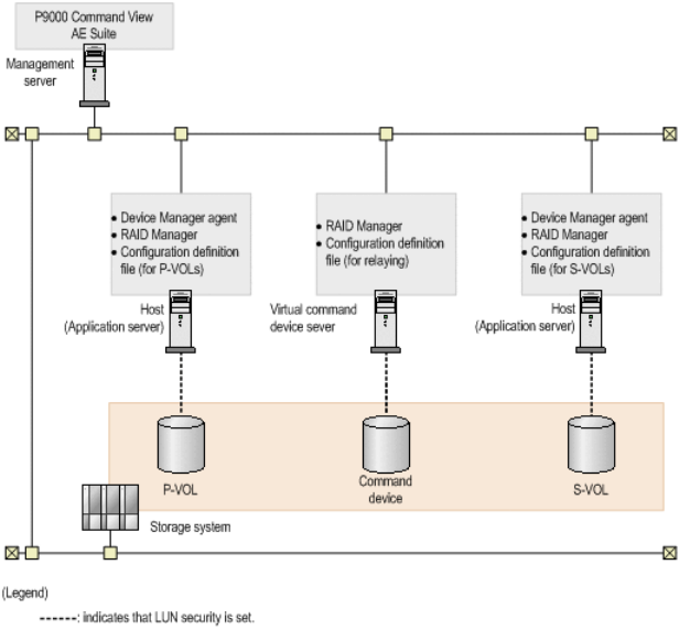 • From the P-VOL and S-VOL, LUN security must be set for the application server.
