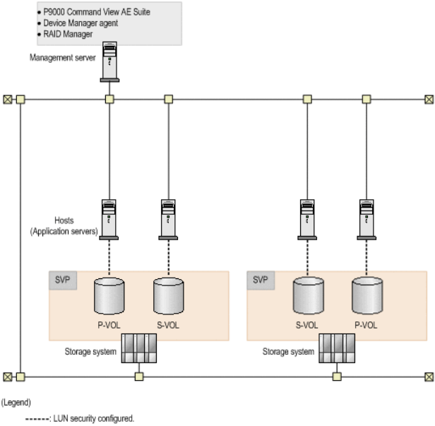 From the P-VOL and S-VOL, LUN security must be set for the application server.